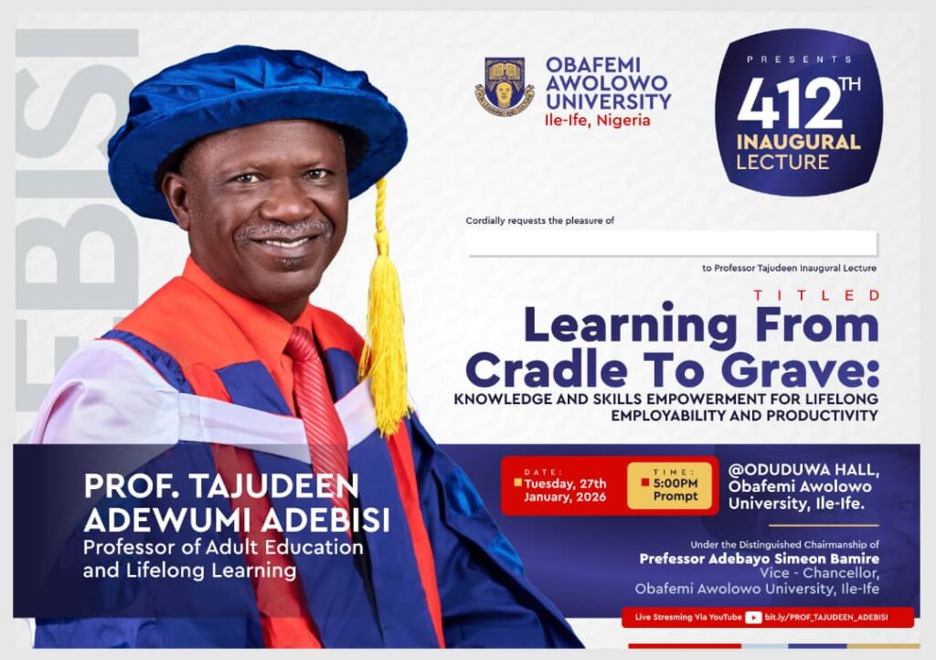 January 12, 2026 2026-01-16 11:49Prof. Tajudeen Adewumi Adebisi to Deliver OAU’s 412th Inaugural Lecture